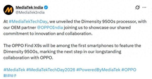 【TechWeb】前年10月16日,OPPO新一代影像旗舰Find X9系列肃穆亮相,先期推出了Find X9和Find X9 Pro两款机型,照旧发布便受到了用户的平常好评。而按照此前老例,OPPO还将在接下来推出全新的Find X9s系列,这段时间以来已经有不少爆料传出,受到了不少用户的关怀。当今有最新讯息,近日有国外爆料达东谈主进一步带来了该机在中枢硬件上的更多细节。