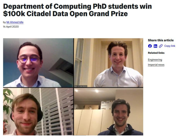 此前帝国理工计较机系几位博士生拿下 Citadel Data Open 冠军、获得 10 万好意思元奖金。这是由 Citadel / Citadel Securities 左右的高含金量数据科学竞赛,背后带有很强的量化金融和市集诈欺导向。是以今天最顶级的金融机构要抢的,早就不是传统真义上的金融专科学生,反而是那些代码、数学、建模和工程才能皆实足硬的东谈主。