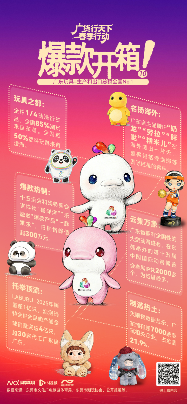 一个个萌态可掬的潮玩手办,一款款兴味吸睛的IP好物,一件件充满巧念念的玩物单品,当作天下玩物分娩和出口总和的“双料冠军”,广东玩物正走进各人亿万家庭的生计,以匠心制造为根、以创意IP为枝,把中国的兴盛送往世界舞台。