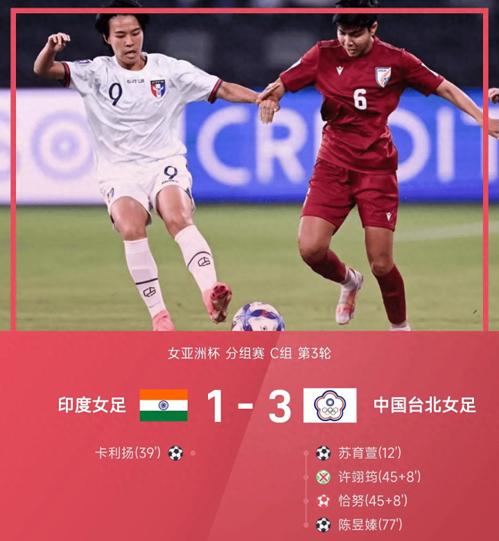 C组的另一场比赛在中国台北女足与印度女足之间伸开。