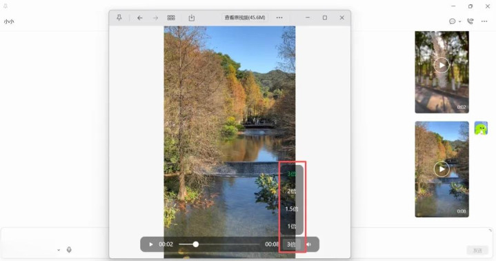 电脑端微信还维持视频倍速播放。点点就能快速切换,倍速赢得要点信息,无须再拖程度条。