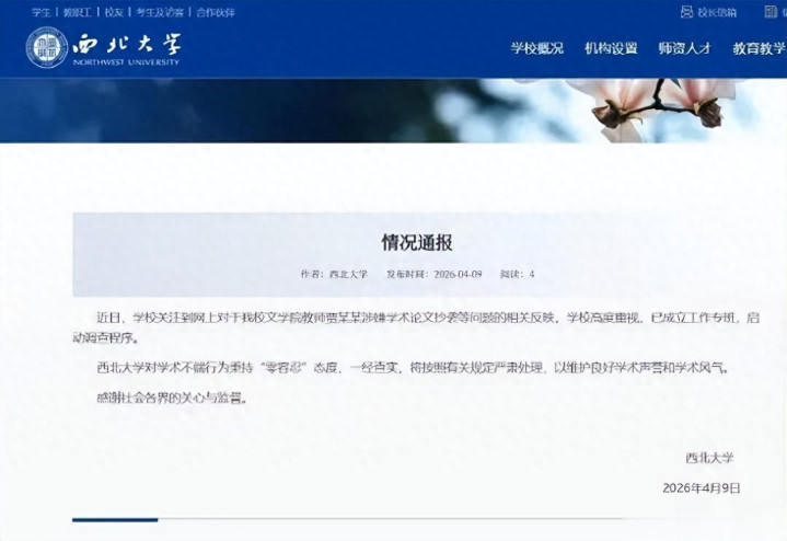 西北大学在通报中说,对学术怪异秉抓“零容忍”格调,仍是查实将严肃贬责。