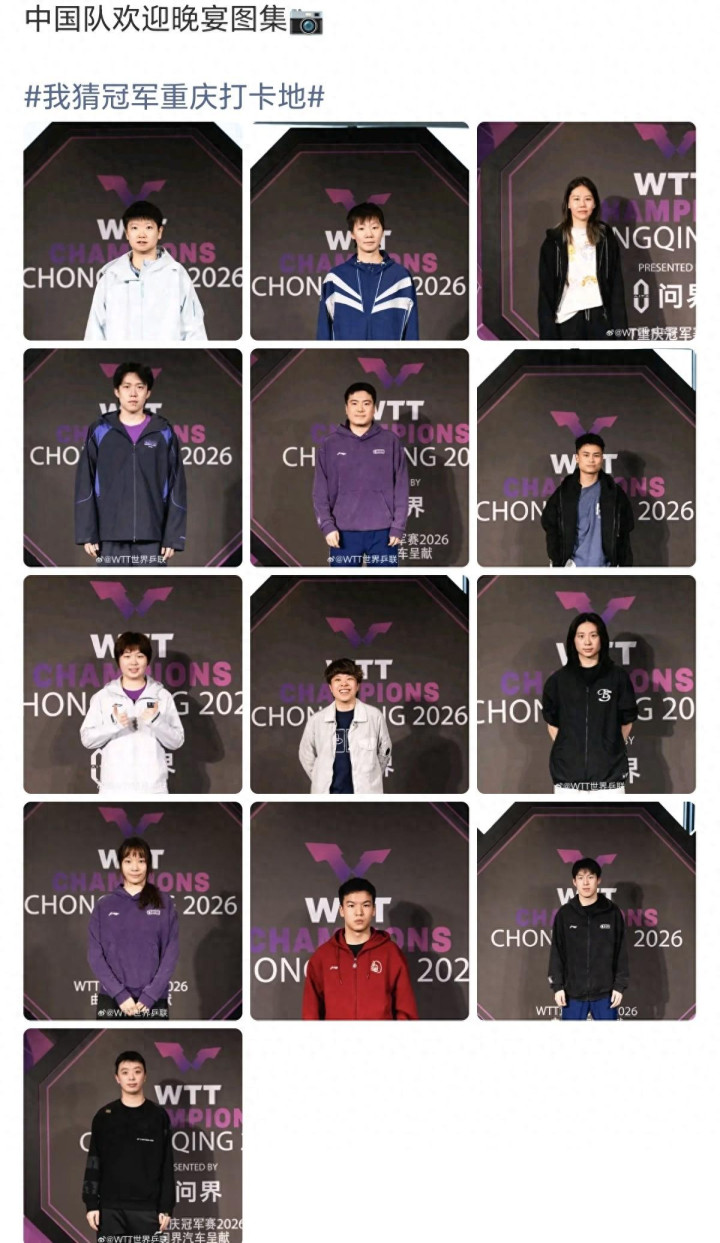 今天看到WTT发了中国队宽饶晚宴图集,一看是13东谈主,少了一个黄友政,这是忘了把黄友政的相片放上去了吧,看到他昨晚也去进入晚宴了。每次拍照的时间,大迪皆笑的绝顶兴隆,看着这是按天下排行来排版的了,昨晚的宽饶晚宴,畅通员们皆玩的很兴隆。