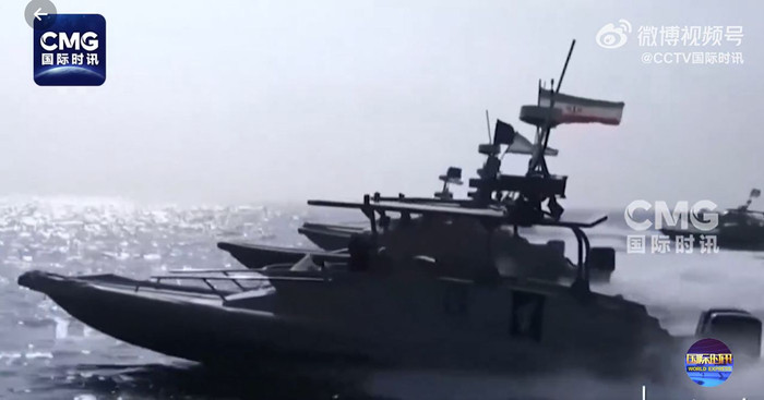 当地时间16日,伊朗伊斯兰翻新卫队舟师在霍尔木兹海峡举行军事演习。