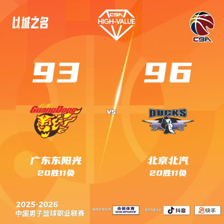 北京时辰3月27日晚,CBA老例赛第31轮,凭借着杰曼的压哨三分,客场作战的北京北汽以96比93逆转打败广东东阳光。